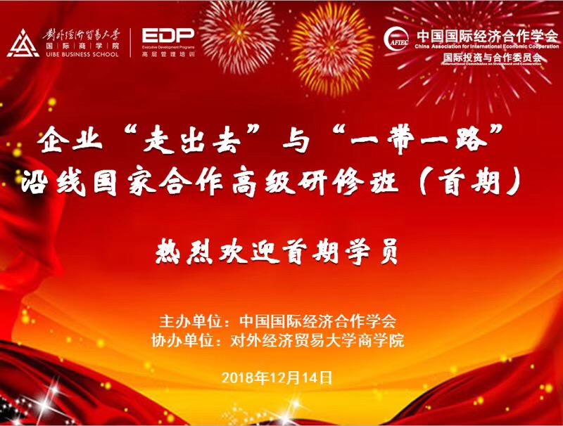 2018年12月14日至16日,由我会主办,对外经贸大学国际商学院协办,学会国际投资与合作委员会承办的《企业“走出去”与“一带一路”沿线国家合作高级研修班》在对外经贸大学成功举办。