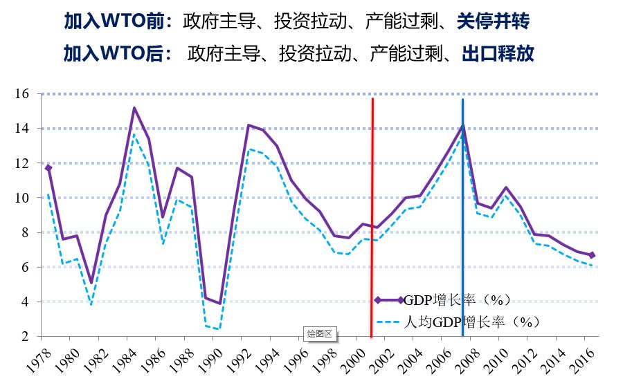 所谓传统增长模式,加入WTO前是政府主导、投资拉动、产能过剩、关停并转。加入WTO后:政府主导、投资拉动、产能过剩、出口释放。变化的只有最后的四个字。