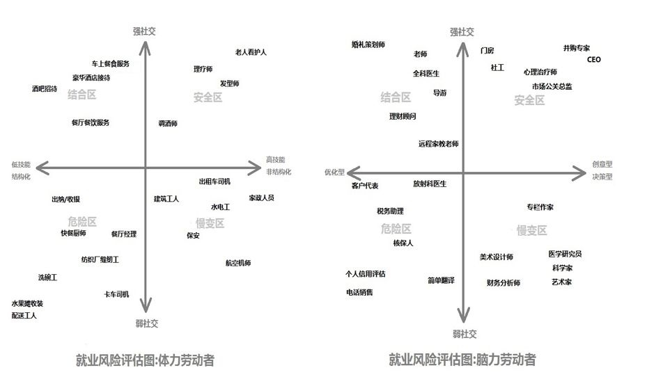 未来的就业市场也是冰火两重天,这是李开复讨论的人工智能对就业影响的两张图。我还要加上一个产业结构调整对就业的影响。这两种影响会导致劳动市场冰火两重天,总体来说失业问题会越来越严重。600万农民工回乡创业说得很好听,其实就是城里没有工作了,回家去吧,怎么创业是他个人的事了。就业压力一定会上升。中国有庞大的农村,是劳动力的蓄水池,城市繁荣的时候,大量劳动力来补充你的不足,城市萧条的时候,他们大量回到农村。未来我们会发现制造业这一块已经不能再吸收新增就业岗位了,农村还继续释放剩余劳动力,制造业也要释放剩余劳动,未来只能在消费服务业创造新增就业岗位,但是这中间转岗培训需要花大力气。